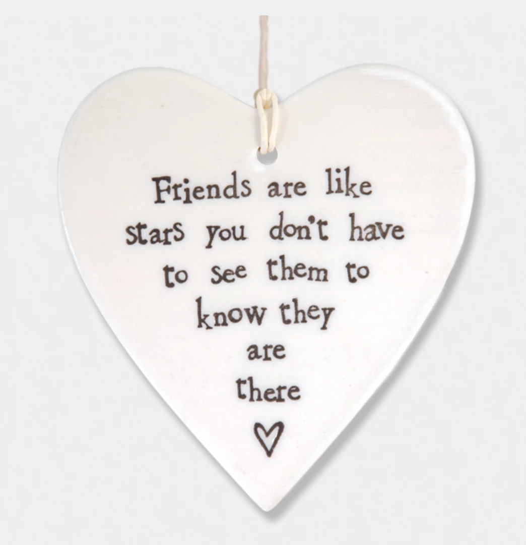 This lovely porcelain heart from East of India has a slightly rippled surface with an embossed message and a white string to hang it up with. Constantly one of our best sellers, these hearts make a perfect gift.