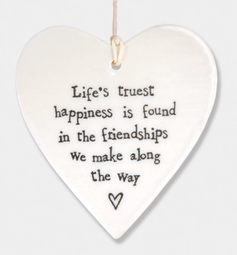 This lovely porcelainΒ heart from East of India has a slightly rippled surface with an embossed message and a white string to hang it up with. Constantly one of our best sellers, theseΒ hearts make a perfect gift.