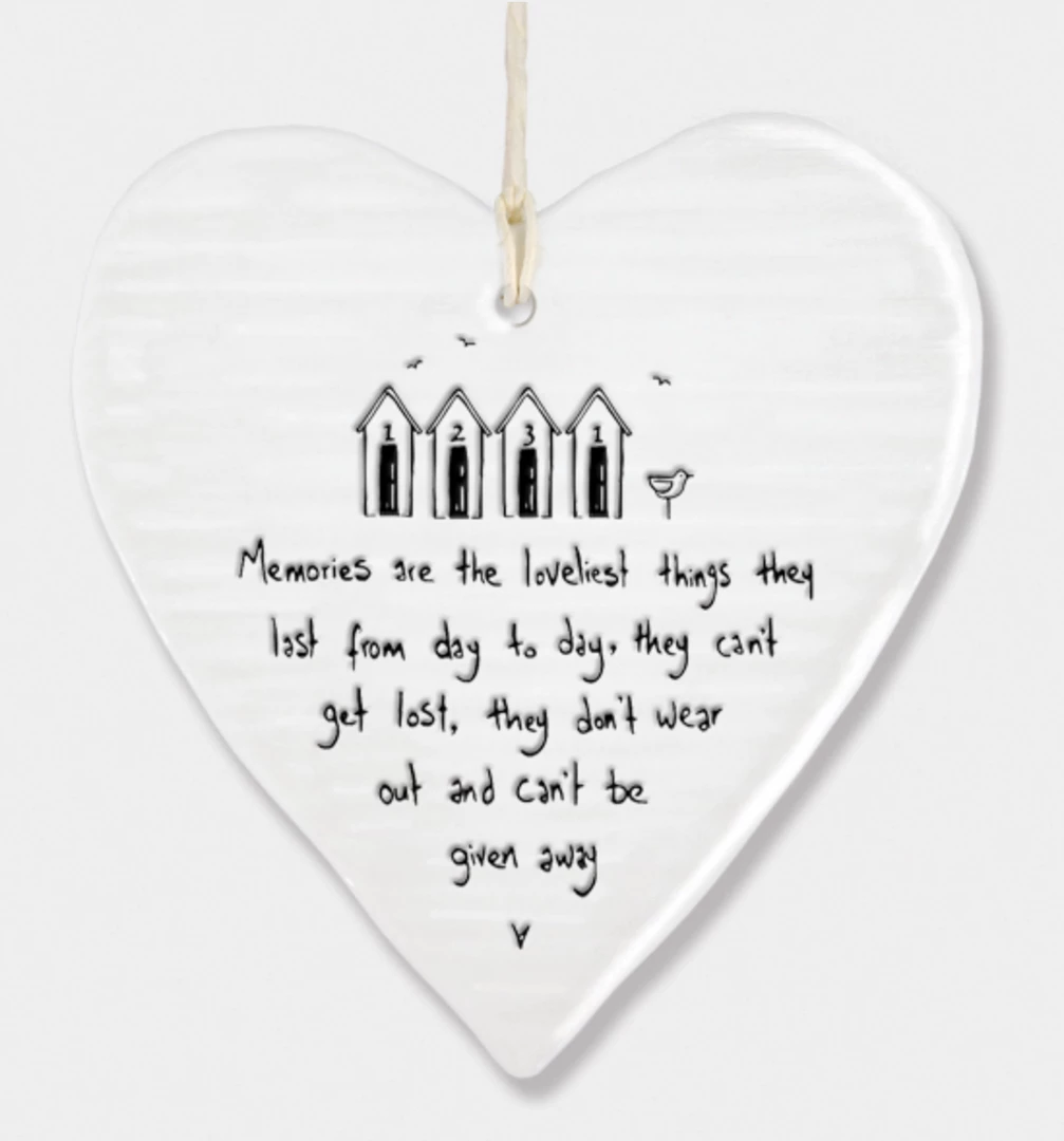 This lovely porcelainΒ heart from East of India has a slightly rippled surface with an embossed message and a white string to hang it up with. Constantly one of our best sellers, theseΒ hearts make a perfect gift.