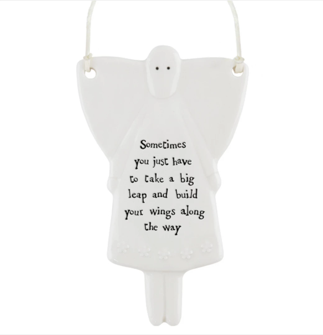 This lovely porcelainΒ hanging signΒ from East of India has a slightly rippled surface with an embossed message and a white string to hang it up with. Constantly one of our best sellers, theseΒ signs make a perfect gift.