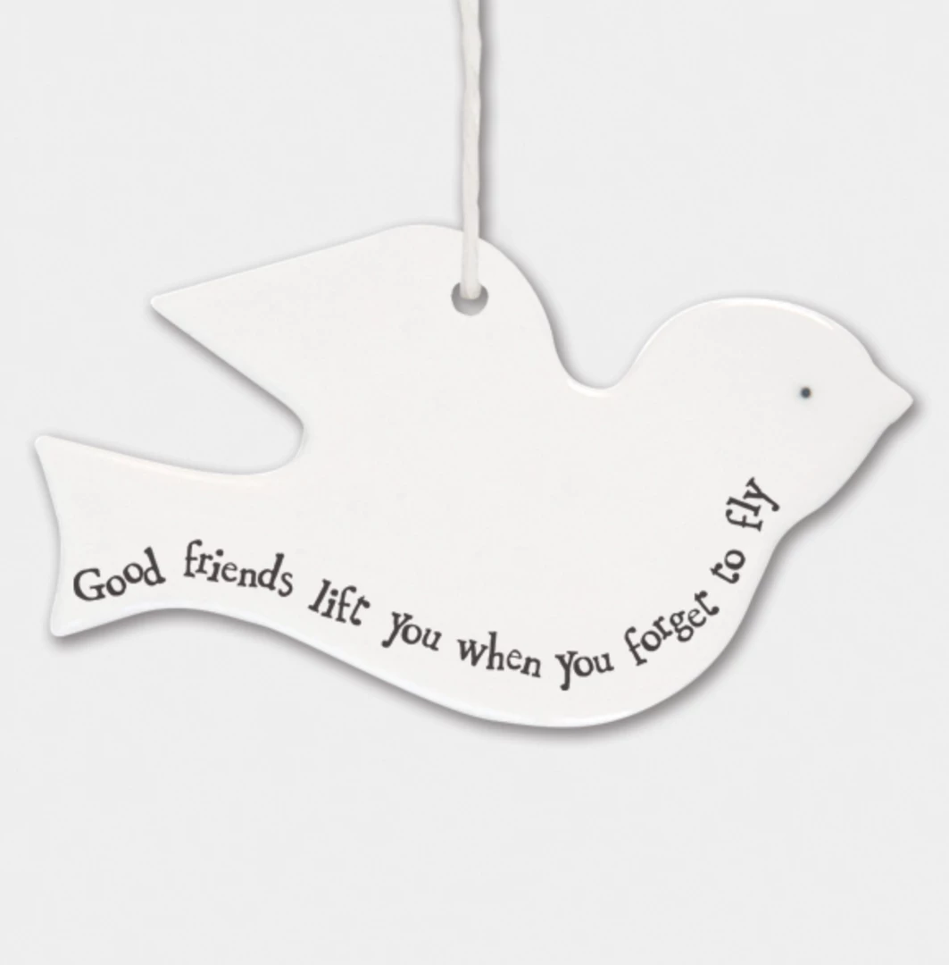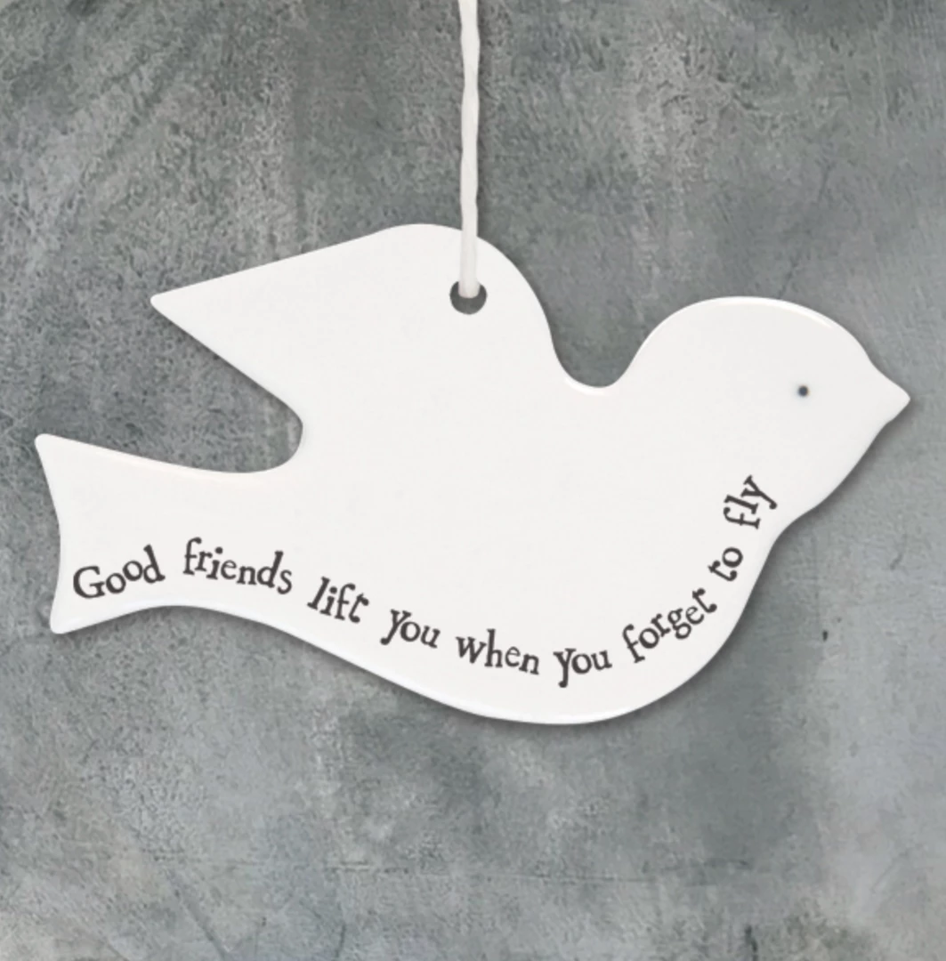 This lovely porcelainΒ hanging signΒ from East of India has a slightly rippled surface with an embossed message and a white string to hang it up with. Constantly one of our best sellers, theseΒ signs make a perfect gift.