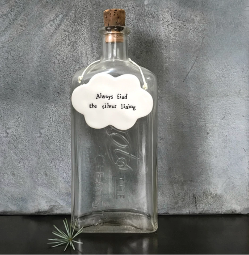 This lovely porcelainΒ hanging signΒ from East of India has a slightly rippled surface with an embossed message and a white string to hang it up with. Constantly one of our best sellers, theseΒ signs make a perfect gift.