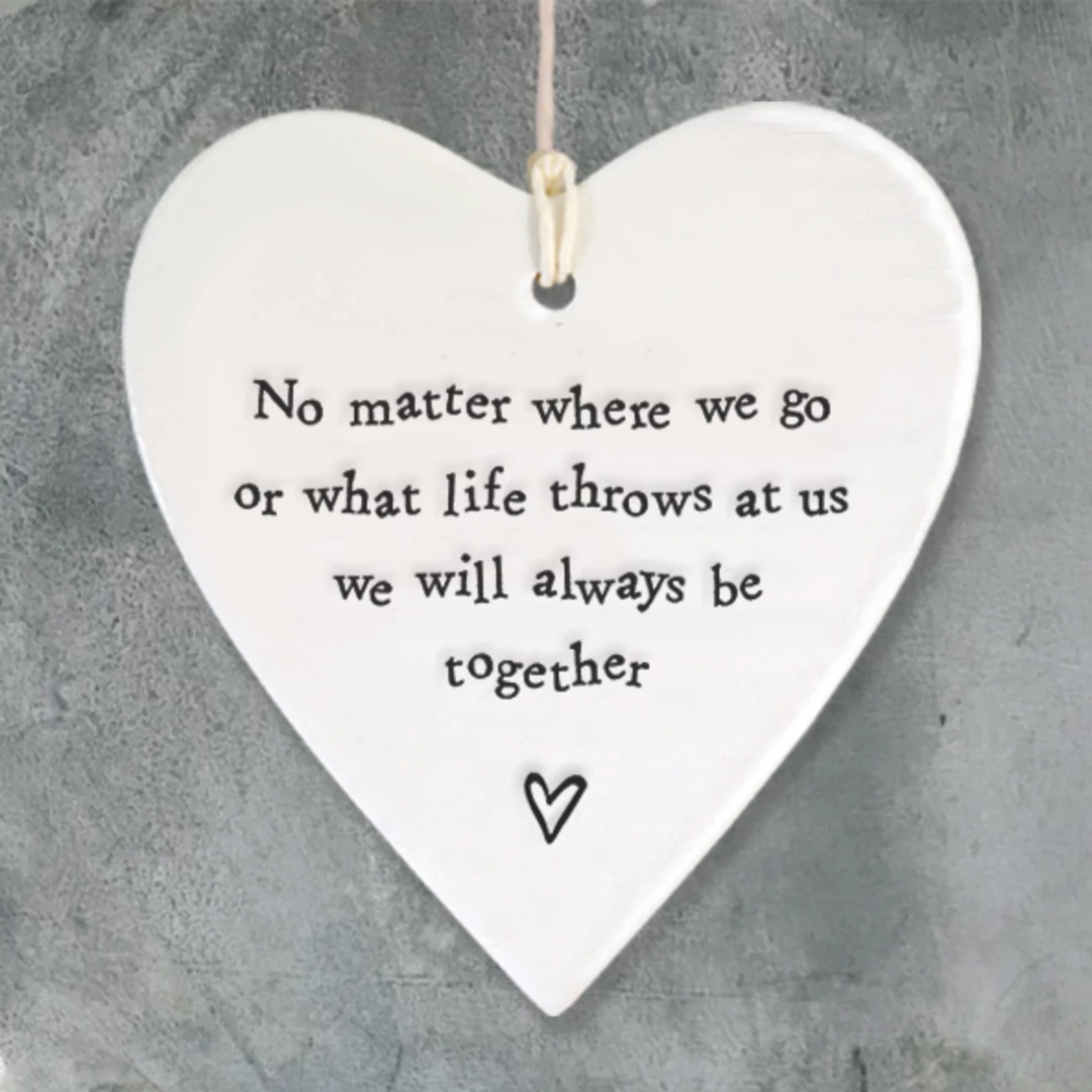 This lovely porcelainΒ heart from East of India has a slightly rippled surface with an embossed message and a white string to hang it up with. Constantly one of our best sellers, theseΒ hearts make a perfect gift.
