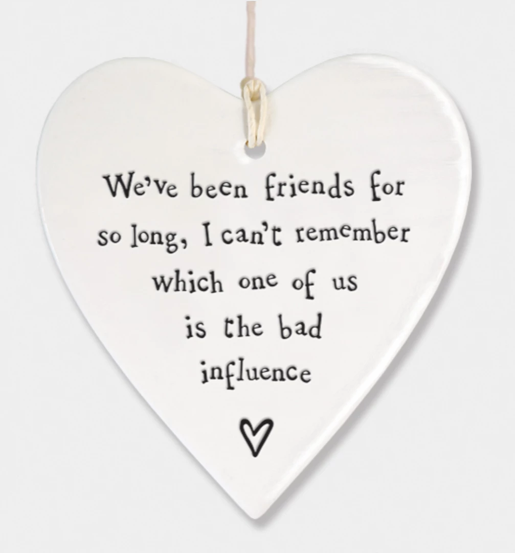 This lovely porcelainΒ heart from East of India has a slightly rippled surface with an embossed message and a white string to hang it up with. Constantly one of our best sellers, theseΒ hearts make a perfect gift.
