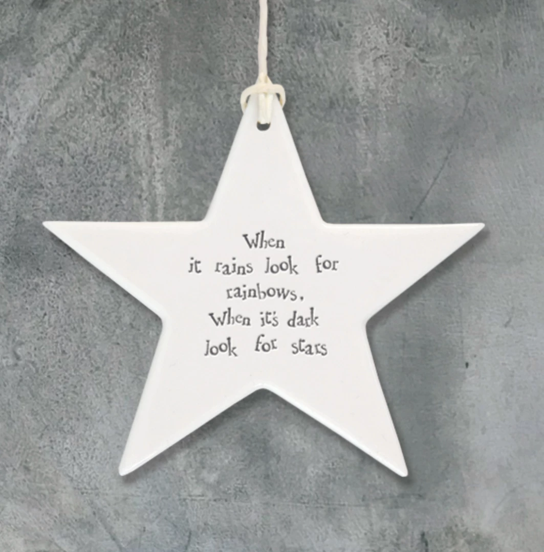 This lovely porcelainΒ hanging signΒ from East of India has a slightly rippled surface with an embossed message and a white string to hang it up with. Constantly one of our best sellers, theseΒ signs make a perfect gift.