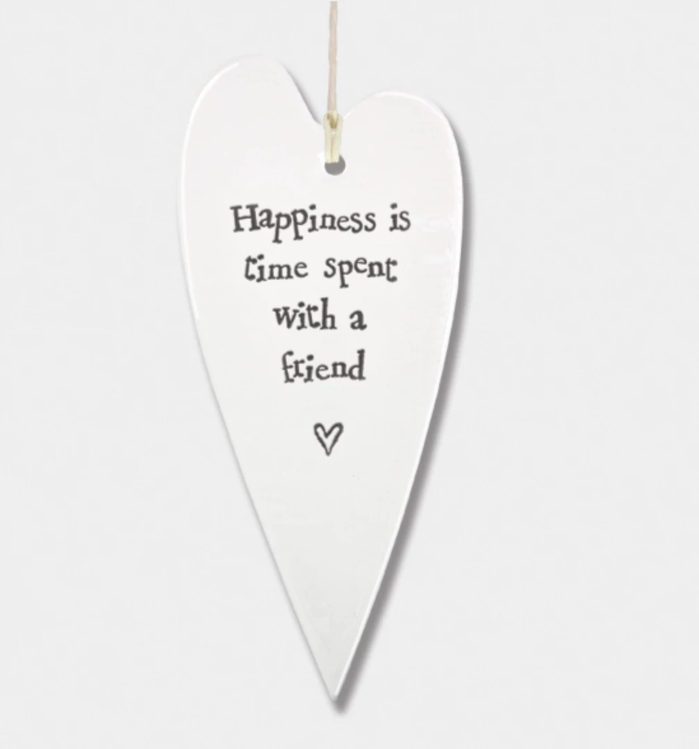 This lovely porcelainΒ heart from East of India has a slightly rippled surface with an embossed message and a white string to hang it up with. Constantly one of our best sellers, theseΒ hearts make a perfect gift.