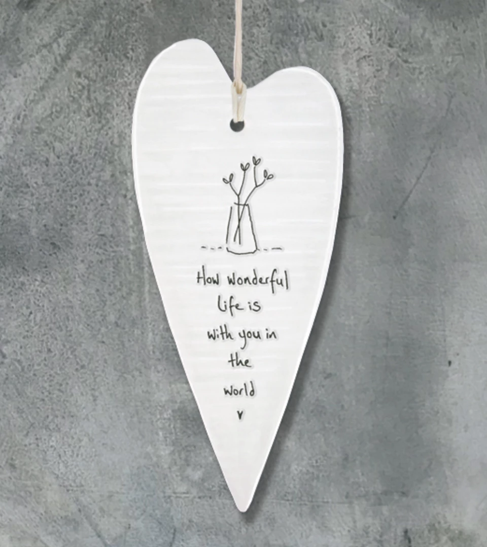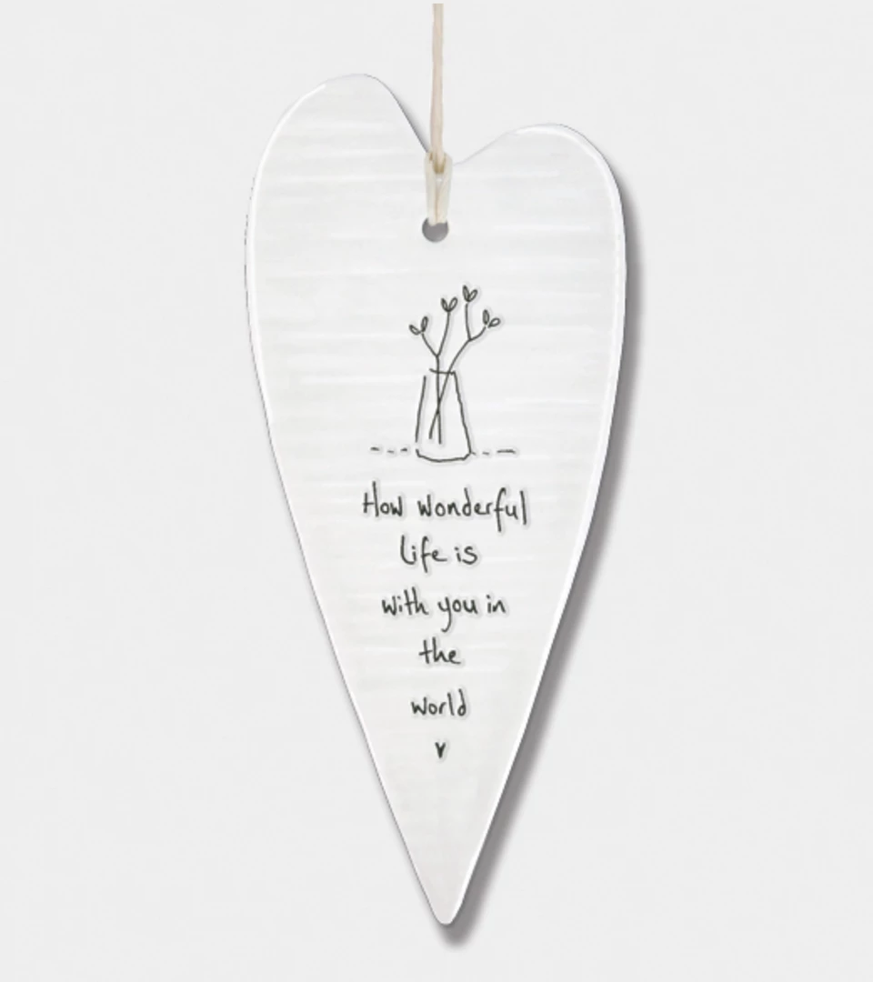 This lovely porcelainΒ heart from East of India has a slightly rippled surface with an embossed message and a white string to hang it up with. Constantly one of our best sellers, theseΒ hearts make a perfect gift.