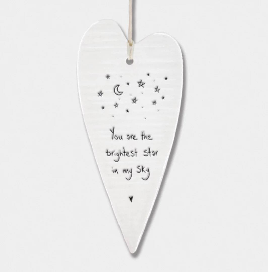 This lovely porcelainΒ heart from East of India has a slightly rippled surface with an embossed message and a white string to hang it up with. Constantly one of our best sellers, theseΒ hearts make a perfect gift.