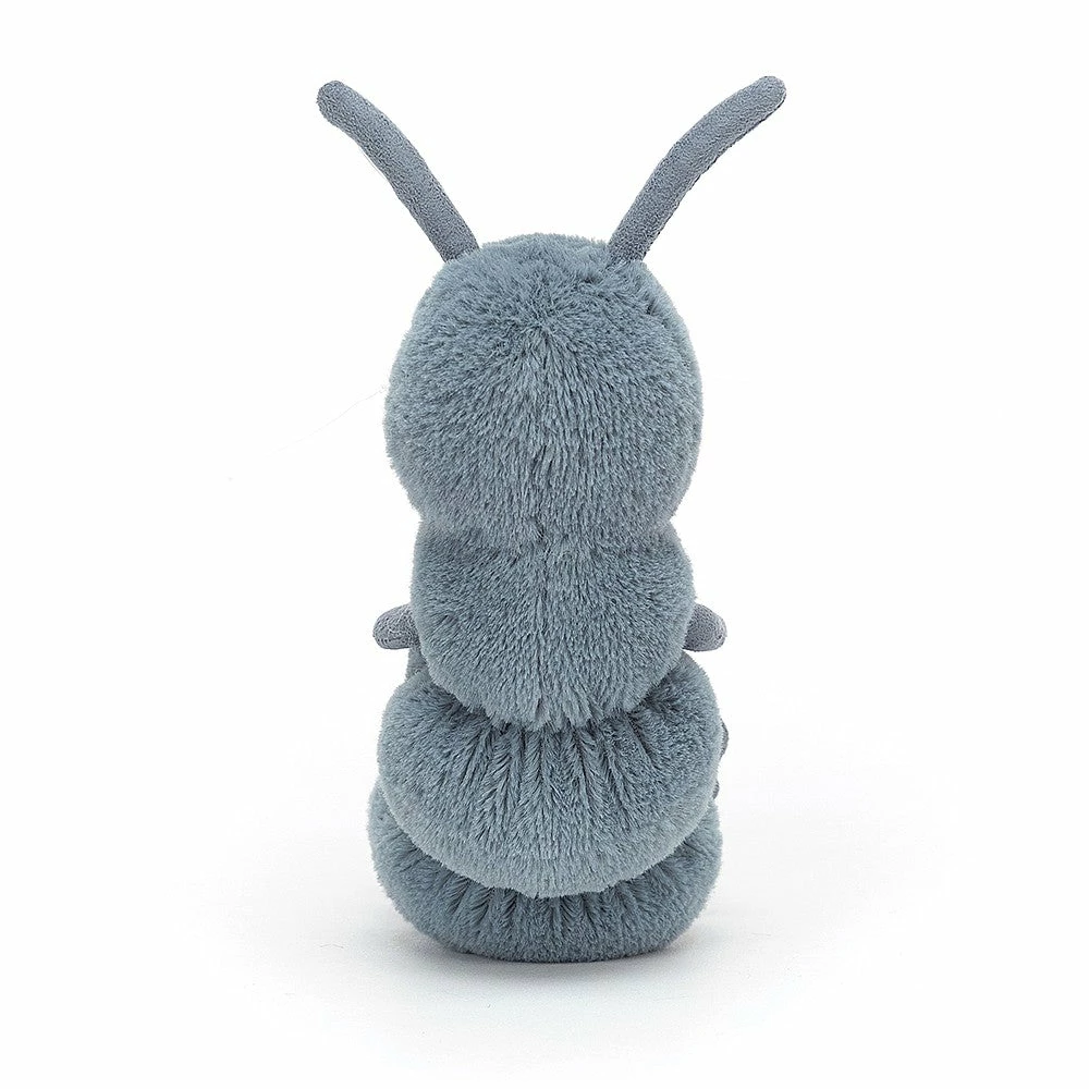 Sitting up to say hello, it’s cheery, chatty Wriggidig Bug! Squiggly and smiley, this snuggly bug has quite the quirky quilted tummy! With diddy legs, suedey feelers, a weighted bottom and a big bug smile, this Wriggidig is a garden goof. Tucked in a tree or sat on the bed, our podgy pal is full of outdoor fun.