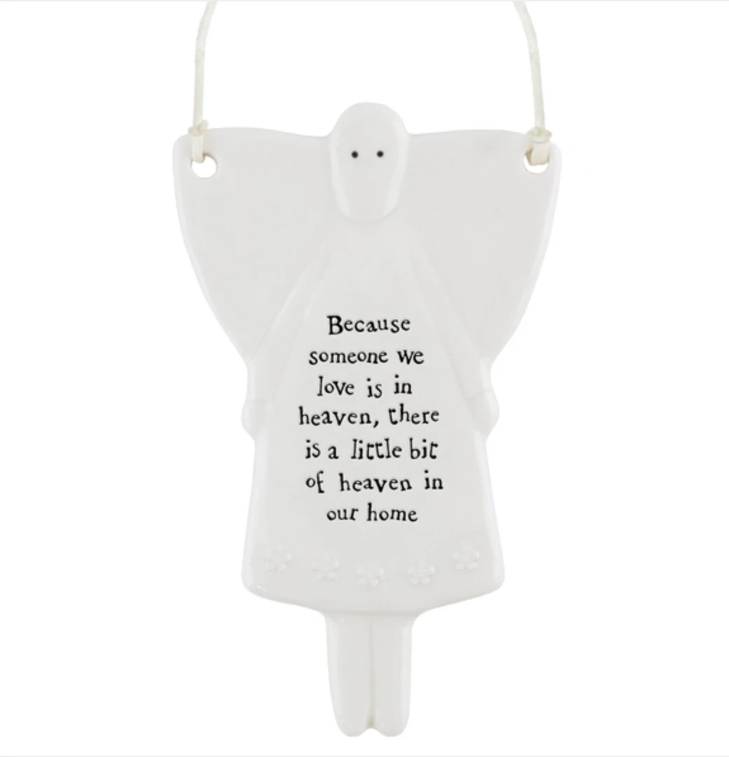 This lovely porcelainΒ hanging signΒ from East of India has a slightly rippled surface with an embossed message and a white string to hang it up with. Constantly one of our best sellers, theseΒ signs make a perfect gift.