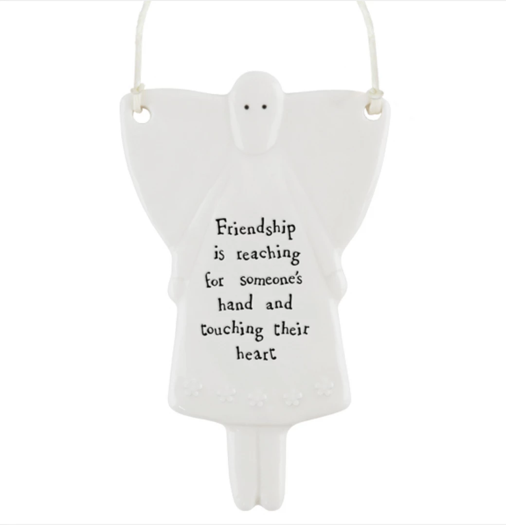 This lovely porcelainΒ hanging signΒ from East of India has a slightly rippled surface with an embossed message and a white string to hang it up with. Constantly one of our best sellers, theseΒ signs make a perfect gift.