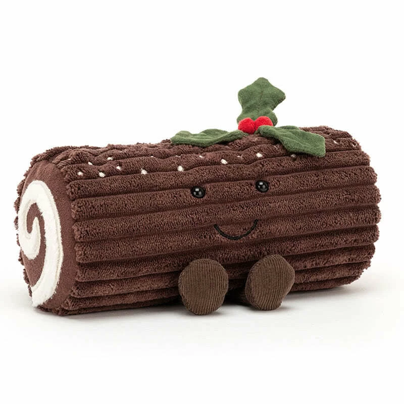 Chunky and cheery, Amuseable Yule Log is a forest of joy! A roll of cordy chocolate softness with stitchy sugar, a little holly hat and bobbly cord feet, this silly sweetie is filled with creamy cuteness.And no calories!