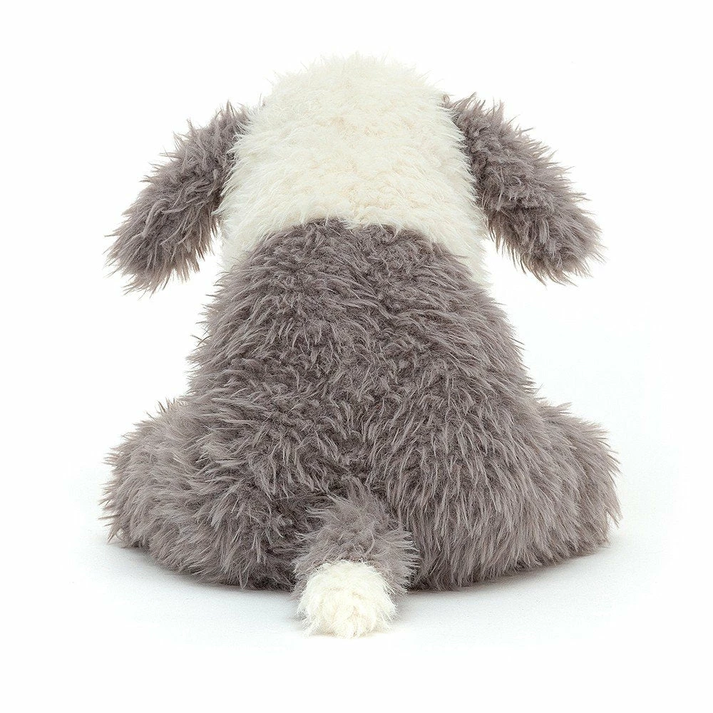 Curvie Sheep Dog awaits your command! More chunky than a collie but just as keen, this scruffly pup with warm-grey patch ears will round up anything you like! No sheep? Cats will do, or even chairs! A loveable tumbler with a big liquorice nose!