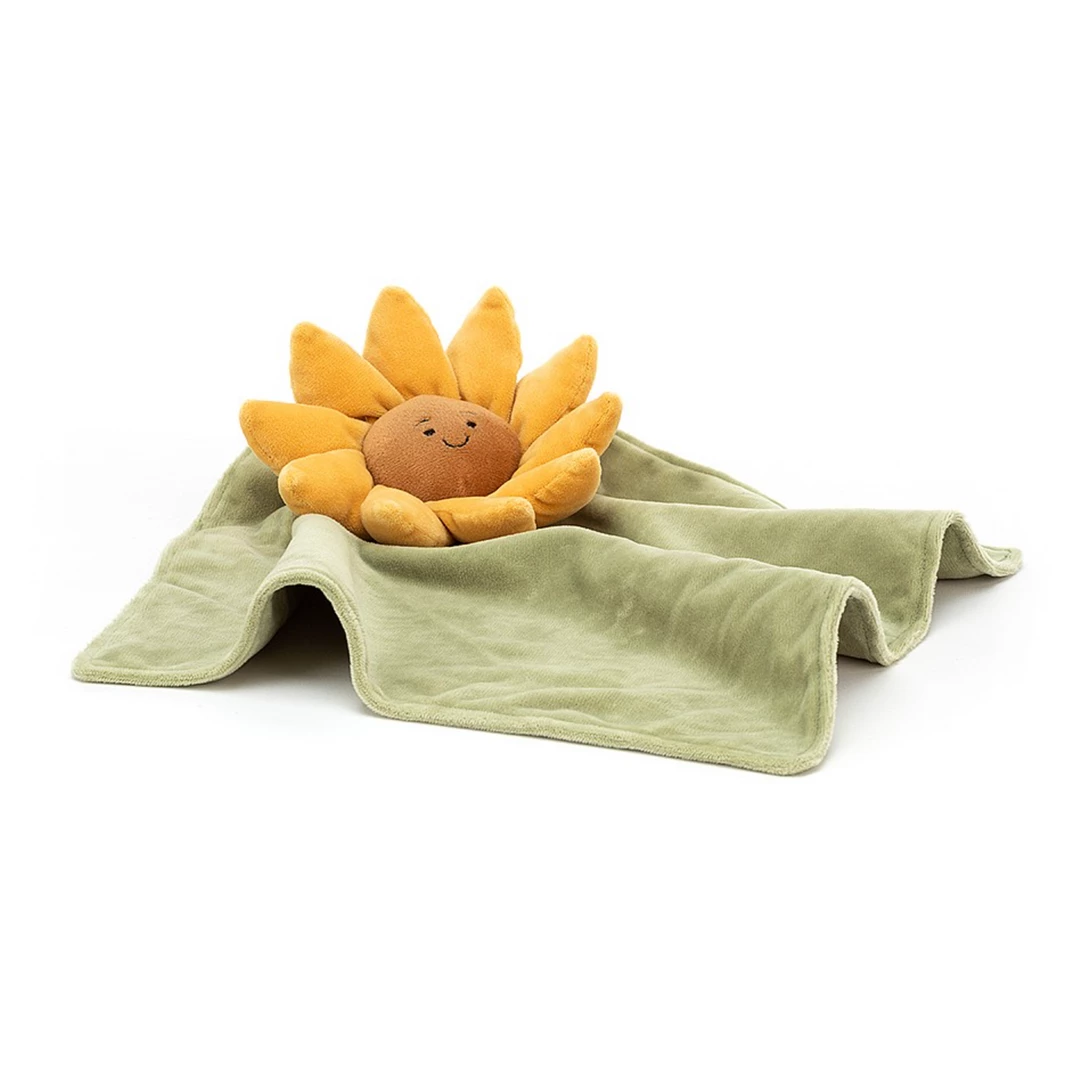 Fleury Sunflower Soother would like to invite you to a lazy garden party! Where? Right here on this fuzzy fur lawn! This summery scamp has a cocoa centre and perfectly squishable yellow petals. Catch the sun and forty winks!