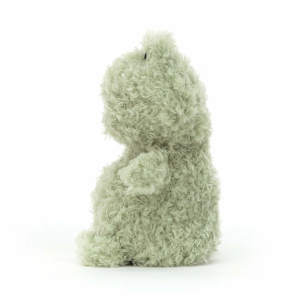 Here’s Little Frog, lining up for the first gentle hop of the day! This mossy moppet is just so tufty and scrumbly-soft, with such a small, secret smile โ like a tiny tussock of joy. Look at those teensy arms and legs too! Count to one, two, three, and let this frog jump into your hands!