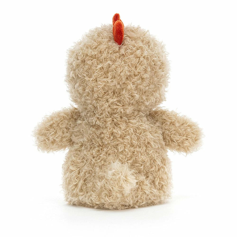 Cock-a-doodle-doo? Little Rooster is practising hard but can’t manage more than a squeak! This tumbly oatmealy chick is too teeny to wake up the farm just yet, no matter how hard those wee wings are waggled! A barnyard cutie with a suedey scarlet comb and itty-bitty golden feet.