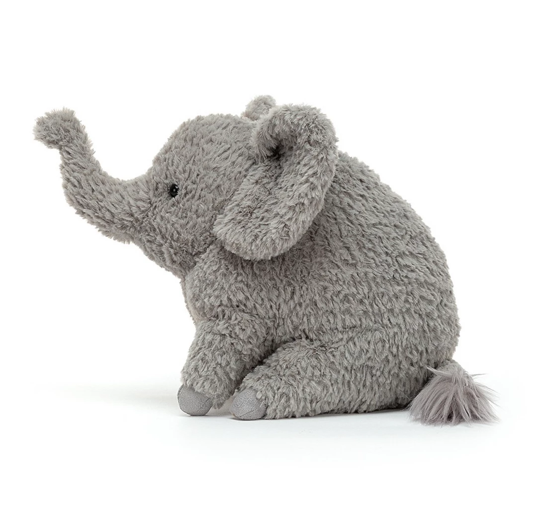 Make way! Rondle Elephant’s trundling through! This super-squat tot has cocoa-grey fur, flappity ears and a roly-poly tum. Tumbly-tufty with little legs, a curly tail and a tickly trunk, this chonky chum loves to sit and chill. Can I get a ta-raaaaah?