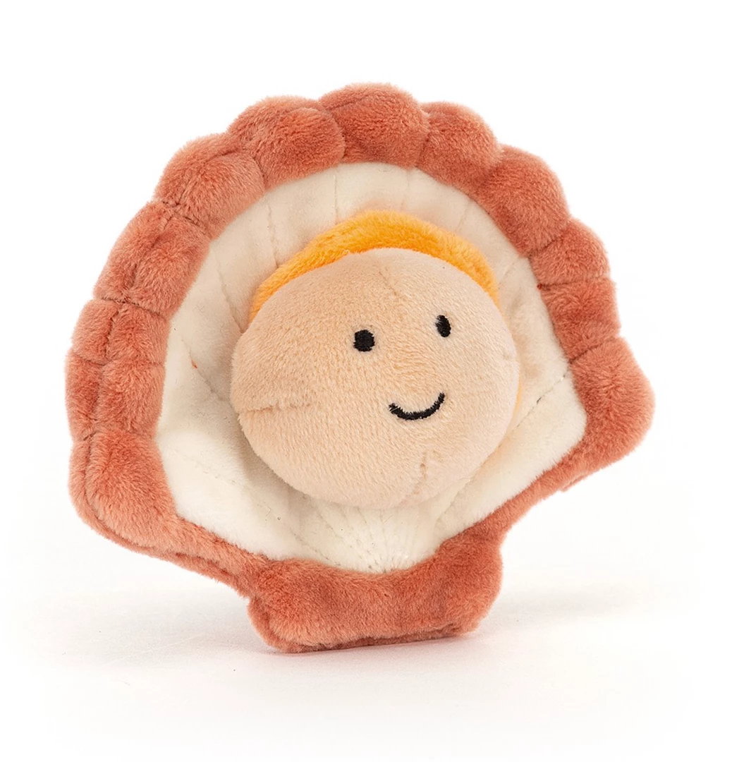 Sensational Seafood Scallop is a bit of an ocean diva. With a peachy smile, daffodil frill and sumptuous stitchy coral shell, this clam is clamouring to get onstage! Divinely briny and ready to rock the pool!