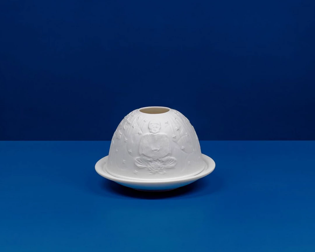 A quality porcelain tea light with a beautiful lithophane design.Lithophane is an etched or moulded artwork in thin very translucent porcelain that can only be seen fully when backlit, in this case a candle or LED light.