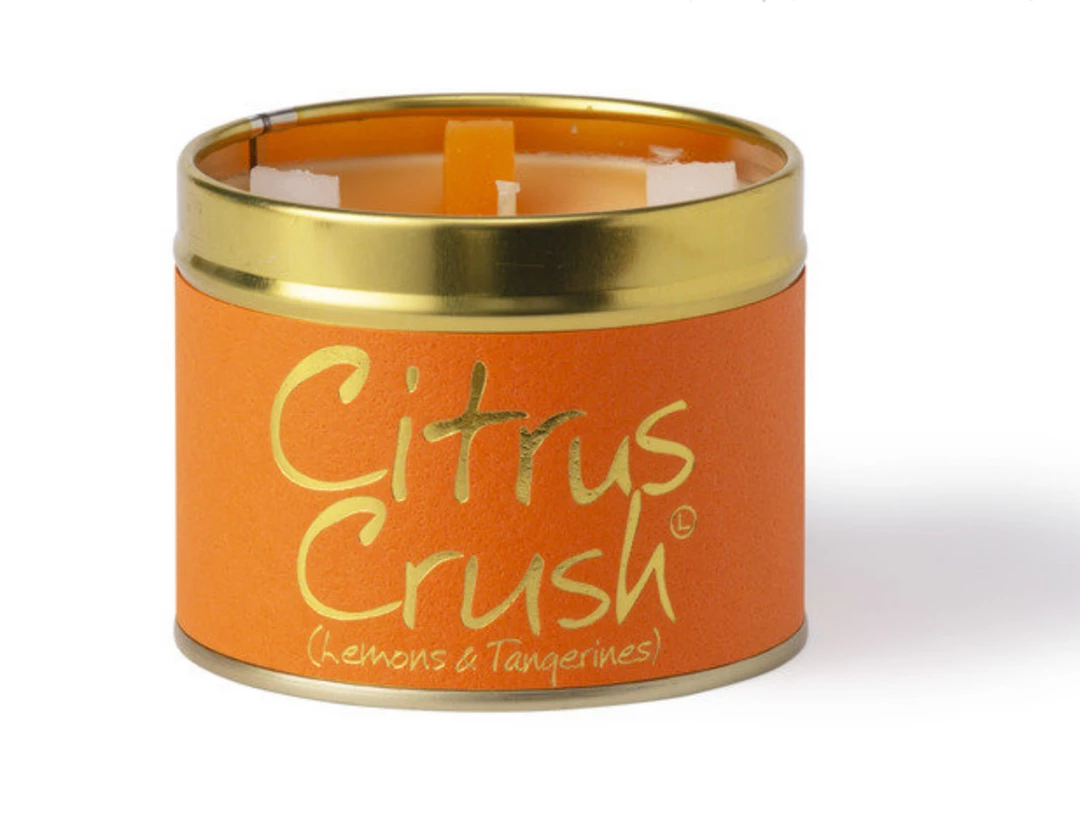 Citrus Crush; a Tangy Blend of Tangerines and Lemons. A candle to remind you that life is in the here and now – so letβs go! Burn Time 35 hours. Dimensions 7.7 x 6.6cm
