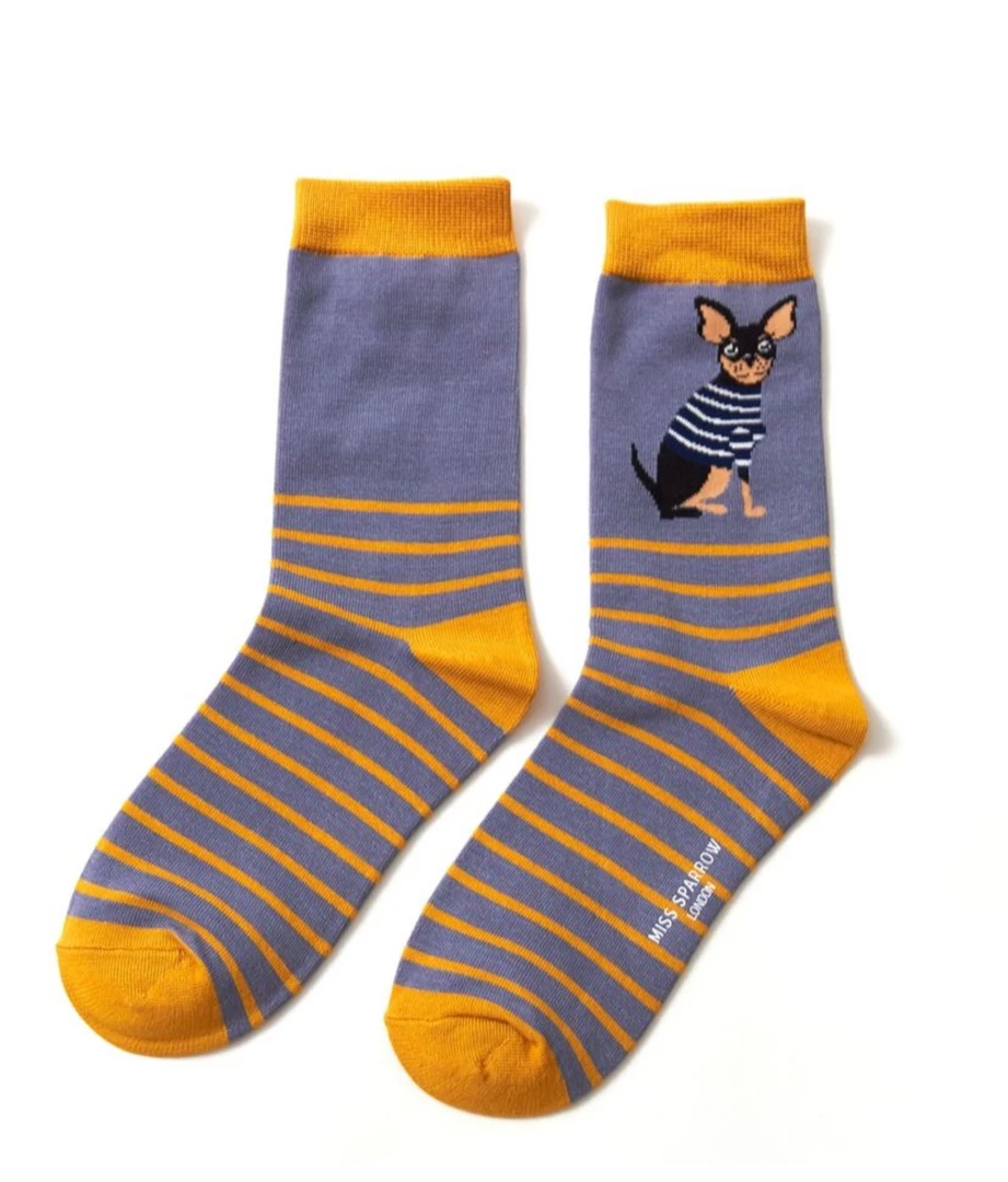 Discount πŸ‘ Mooch-andover Miss Sparrow Bamboo Ladies 🧦 Socks – Chihuahua Stripes Blue ✨