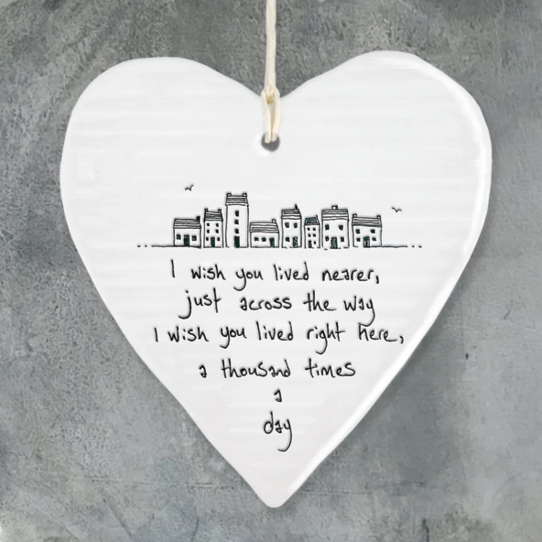 This lovely porcelainΒ heart from East of India has a slightly rippled surface with an embossed message and a white string to hang it up with. Constantly one of our best sellers, theseΒ hearts make a perfect gift.