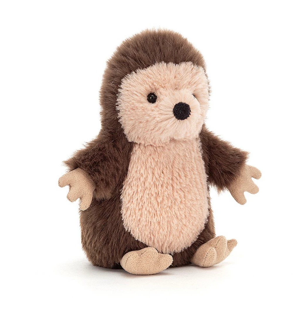 Nippit Hedgehog has just woken up, and can’t wait to ramble round the garden! This stocky scamp has a tousled tuxedo of soft cocoa spines and nougat fur. With suedey paws and shiny eyes, this hoglet’s all set for a snuffly adventure!s.