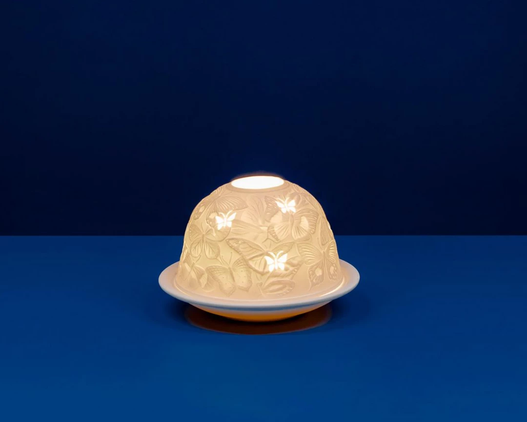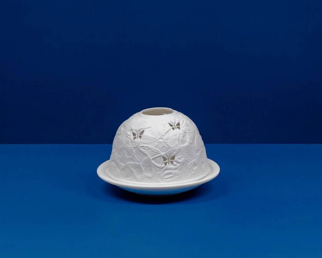 A quality porcelain tea light with a beautiful lithophane design.Lithophane is an etched or moulded artwork in thin very translucent porcelain that can only be seen fully when backlit, in this case a candle or LED light.