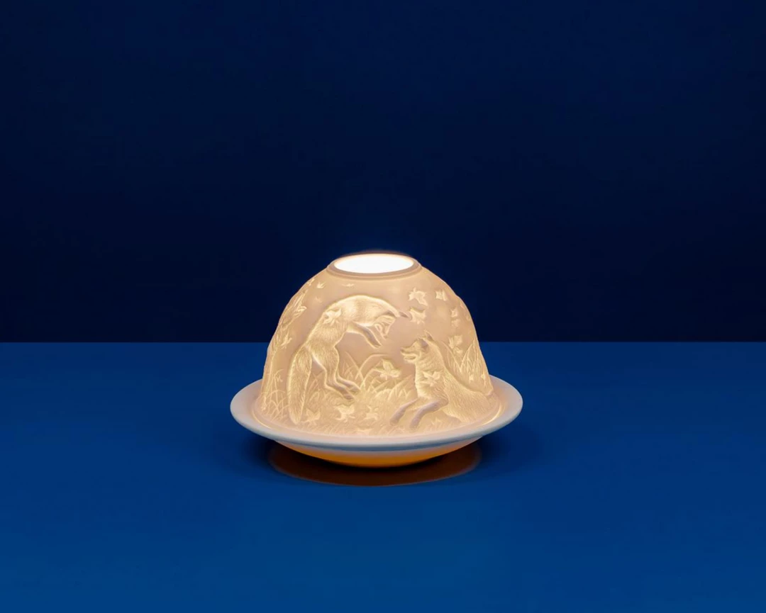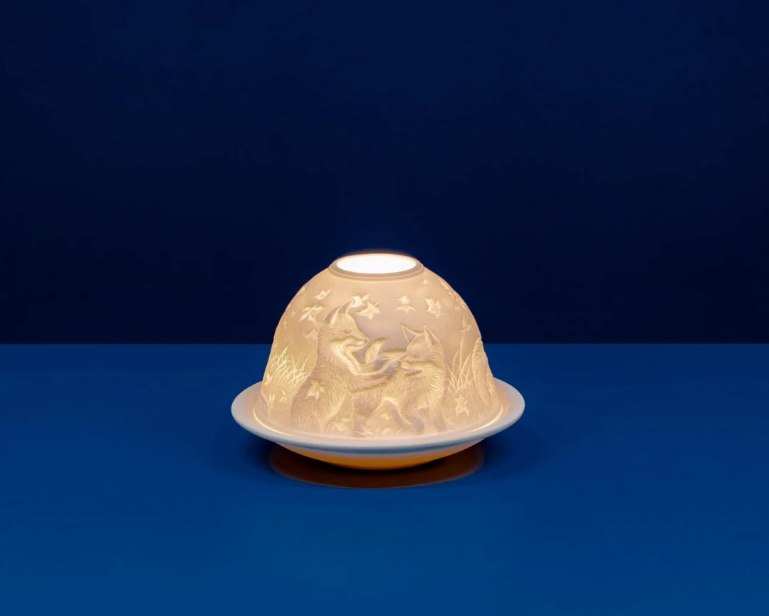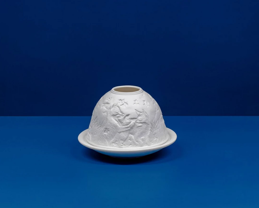 A quality porcelain tea light with a beautiful lithophane design.Lithophane is an etched or moulded artwork in thin very translucent porcelain that can only be seen fully when backlit, in this case a candle or LED light.