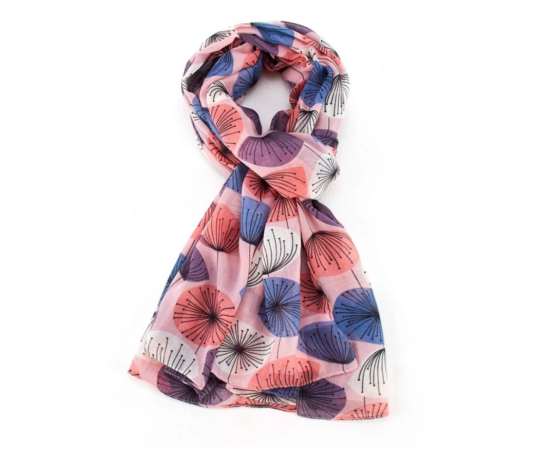 This scarf is super soft and light and has aΒ scandi dandelion design on a soft pink background