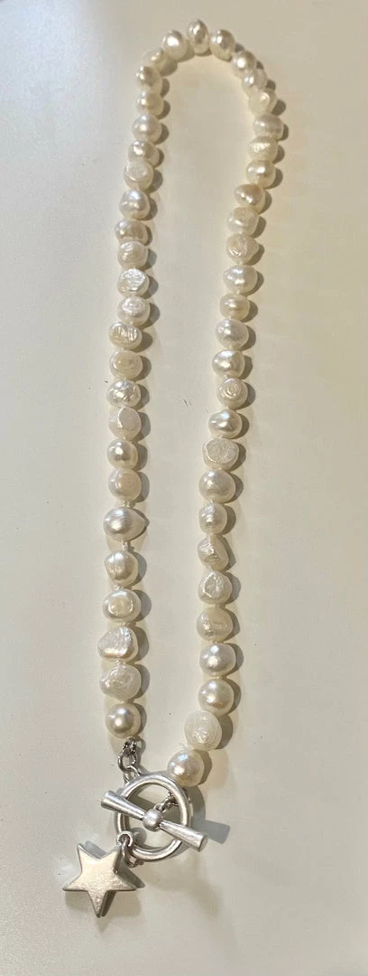 This necklace has aΒ bar and loop fastening – very easy to pop on!