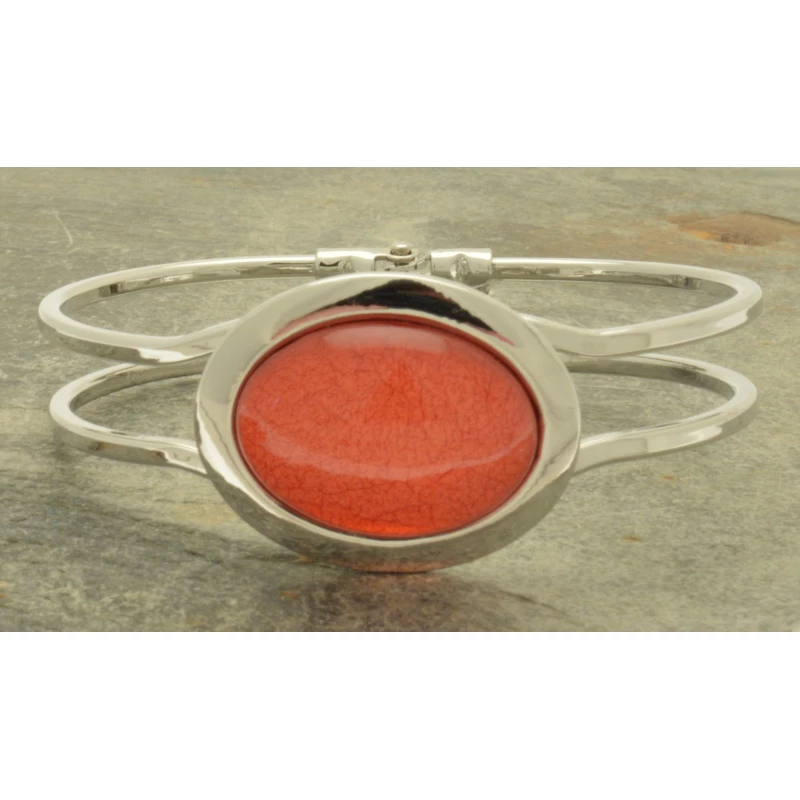 This coral resin bracelet from Miss Milly has a hinged join to make wearing easy and fuss free and means it can be worn by any size of wrist. Made using hypoallergenic nickel free white metal and resin.