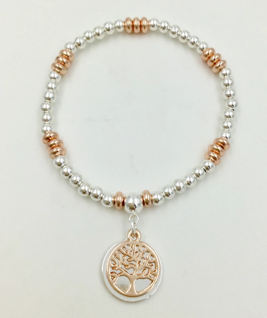 ThisΒ Tree Of LifeΒ fashion bracelet is elasticated and has a little danglingΒ tree hanging from it. Available in two colourways.