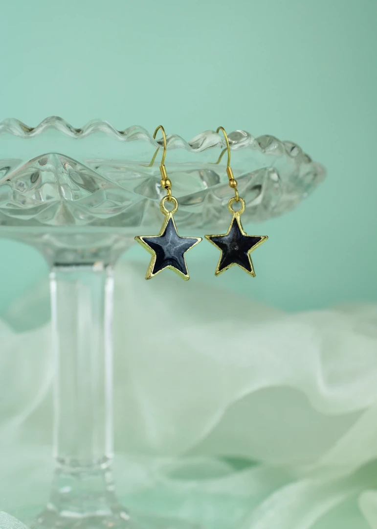 These sweet little hand enamelled star earrings, are in a gorgeous dark slate grey colour.Β