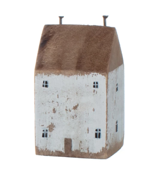 These tiny rustic coastal themed hand painted houses are made from natural wood.ย Simple ornaments such as this one look good when paired with other similar coastal decorations and can easily create a stunning seaside display.