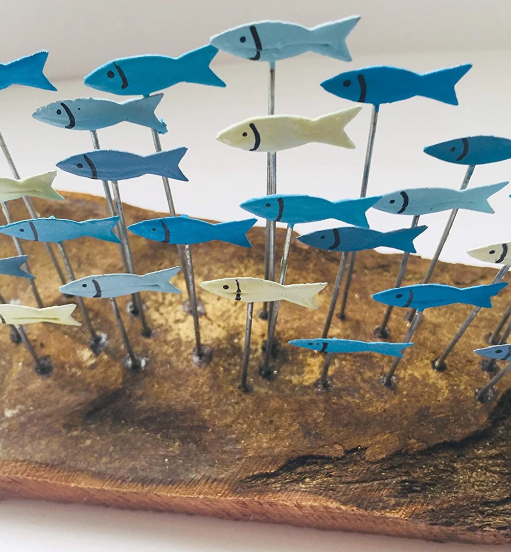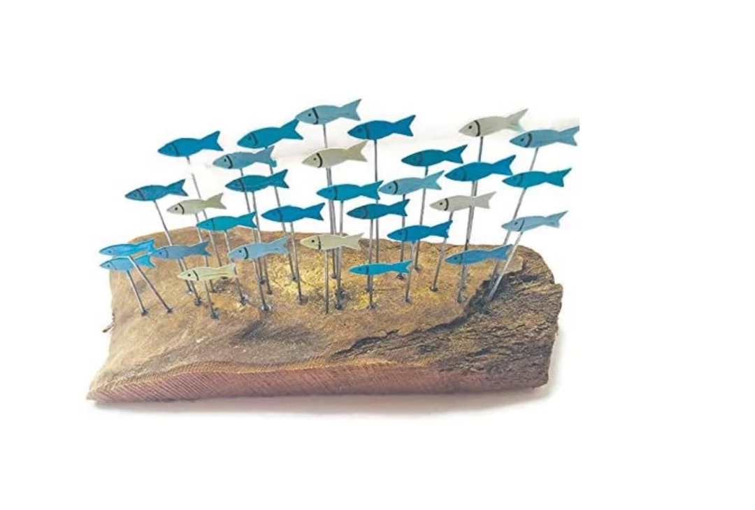 - Beautiful driftwood with metal hand painted sardines