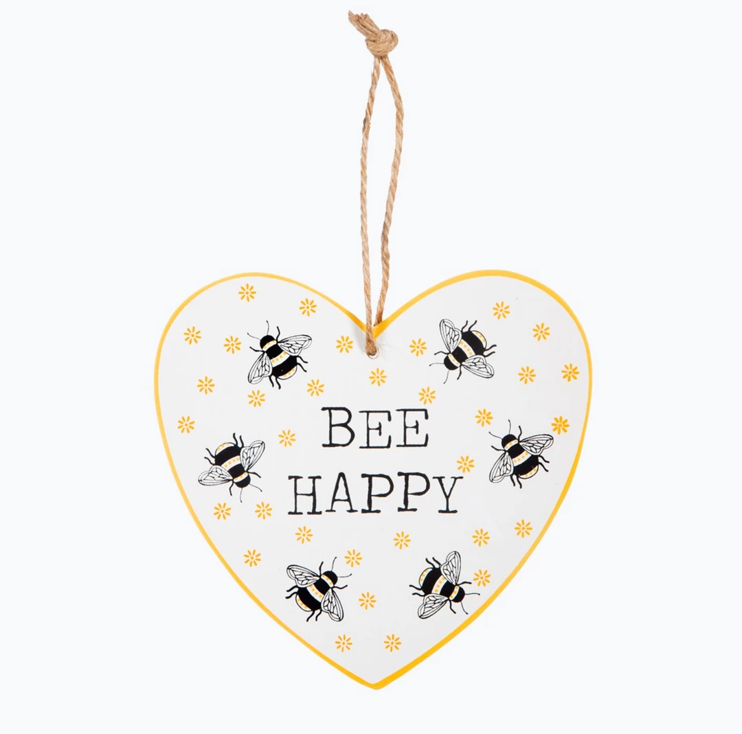 Sometimes, a wooden heart plaque can say it best. Hung with jute, this decoration is made from white painted wood and features the quote ‘bee happy’ in a beautiful black typography. Complete with our buzzing bee design and details of honey yellow.ย