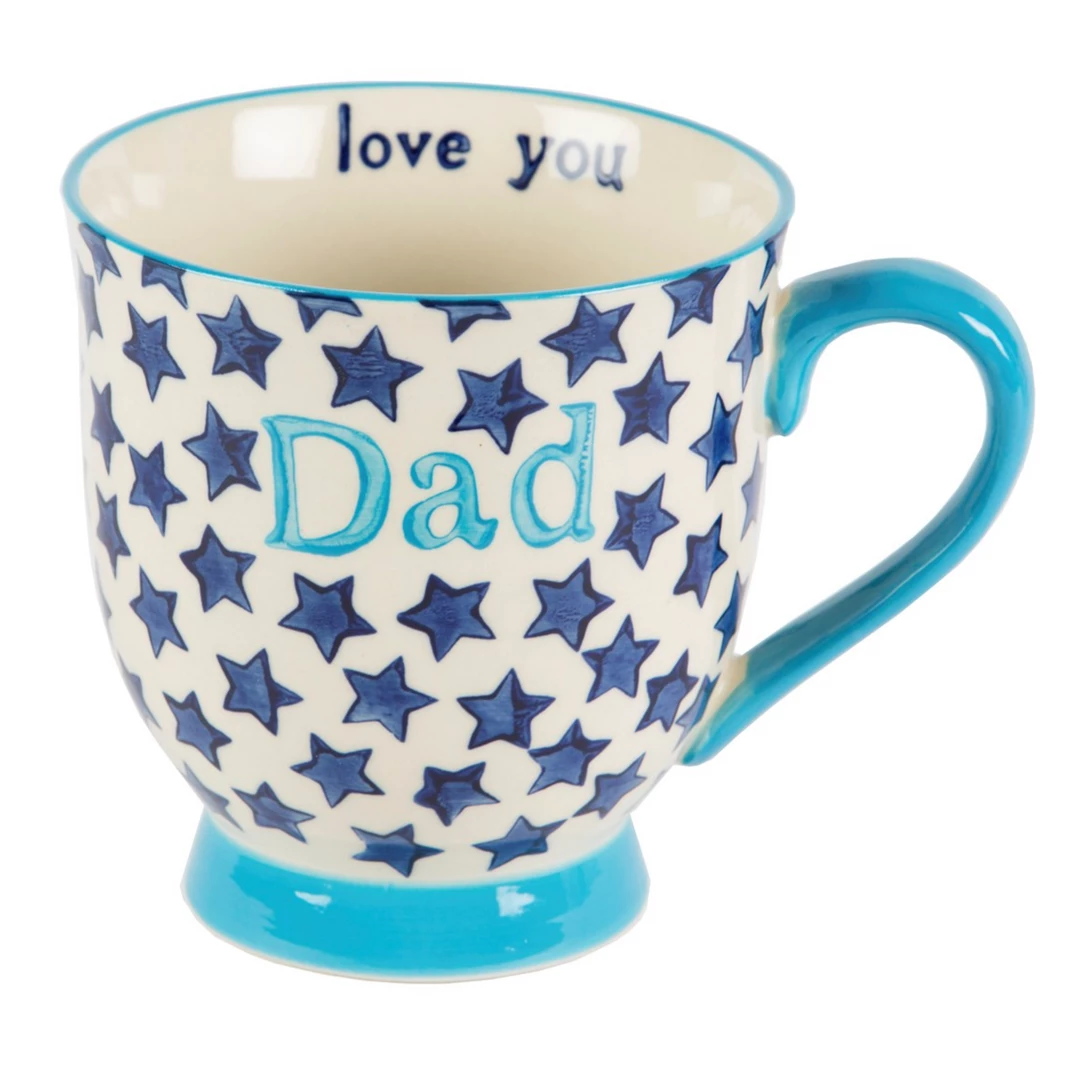 Introducing the Bohemian Stars dad mug!ย Featuringย aย handpainted blue colourway, the design is composed of a scattering of stars and a homemade touch.ย Thisย mug bears a surprise message – the inside reads โlove youโ. A perfect way to spread the love to your old man.