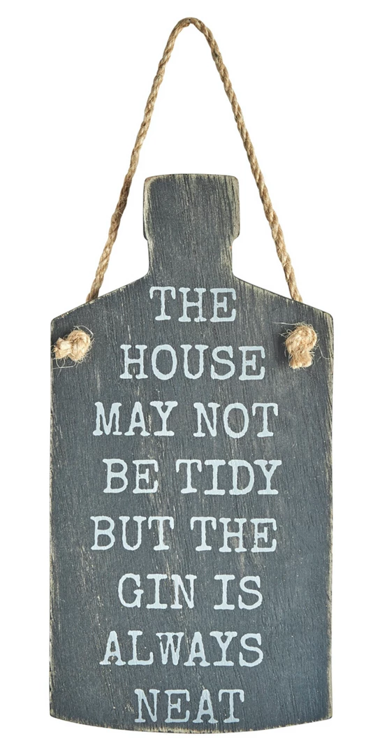 Features theΒ slogan:Β “The House May Not Be Tidy But The Gin Is Always Neat”