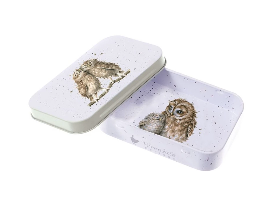 Perfect for storing trinkets, pills or anything small, this mini tin features an adorable owl design.
