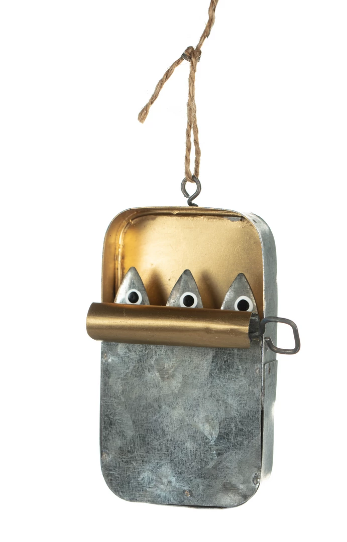 This quirky tin of sardinesΒ is made from metal and has three cheeky sardines peeking out of their tin!Β