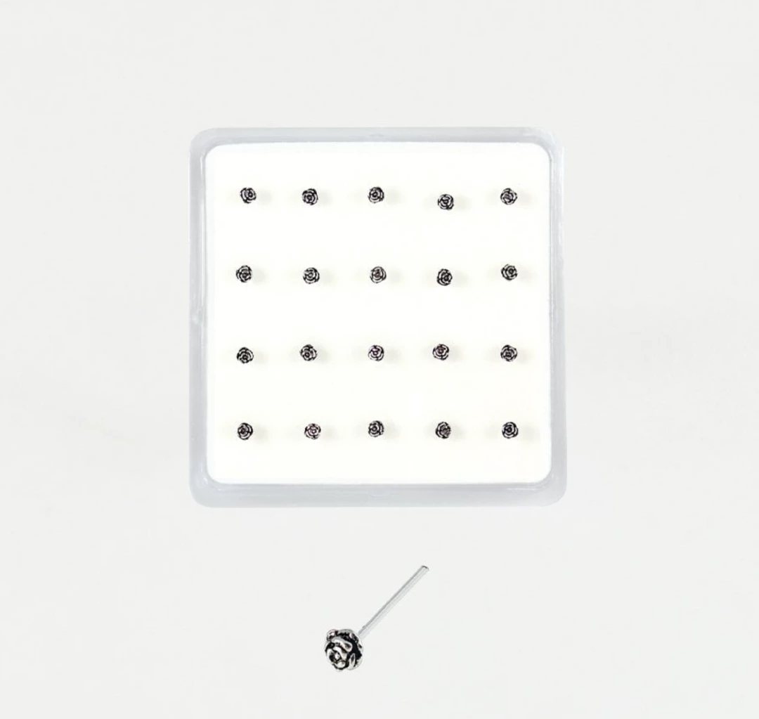 Sterling Silver 4mm Rose nose pins, with a straight back.