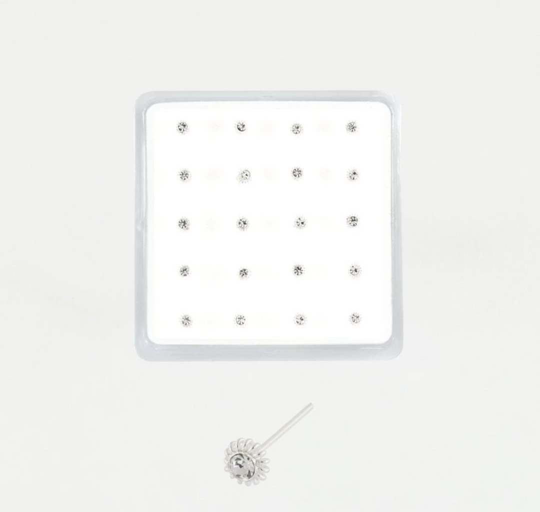 Sterling Silver clear gemset sunflower nose pins, with a straight back.