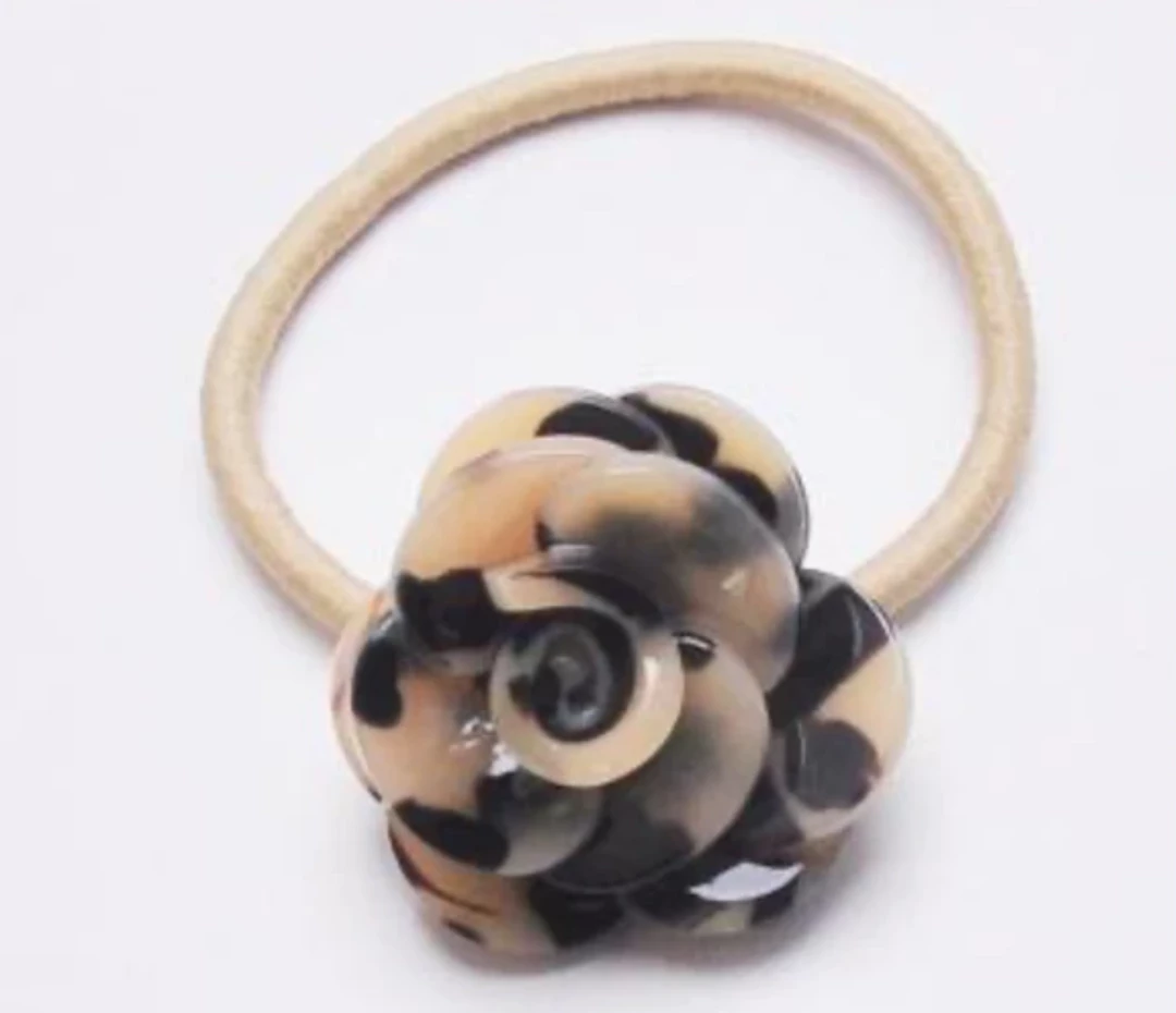 Hair elastic with a resinΒ tortoiseshell rose in cream and brown tones.Β