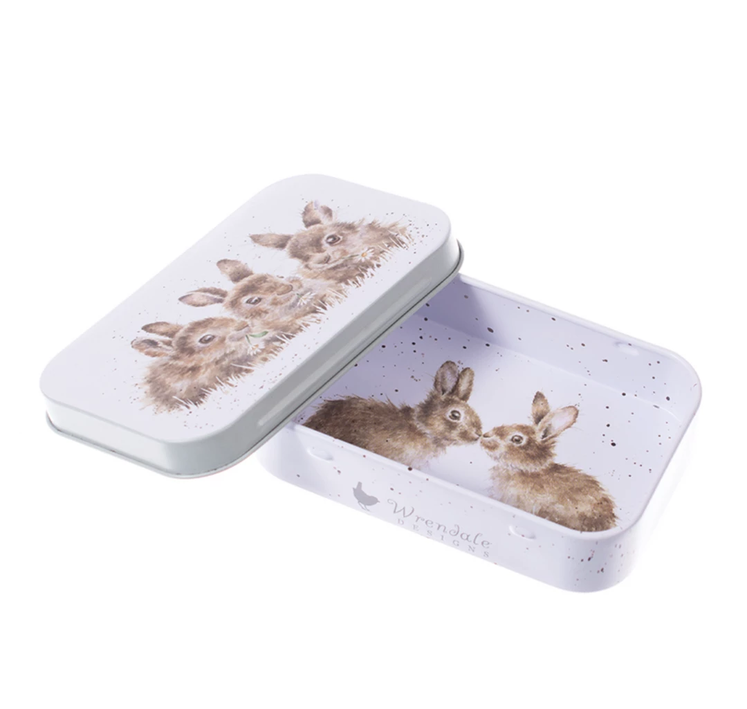 Perfect for storing trinkets, pills or anything small, this mini tin features anΒ adorable bunny rabbit design.