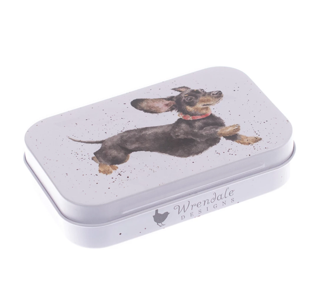 Perfect for storing trinkets, pills or anything small, this mini tin features anΒ adorableΒ dog design.